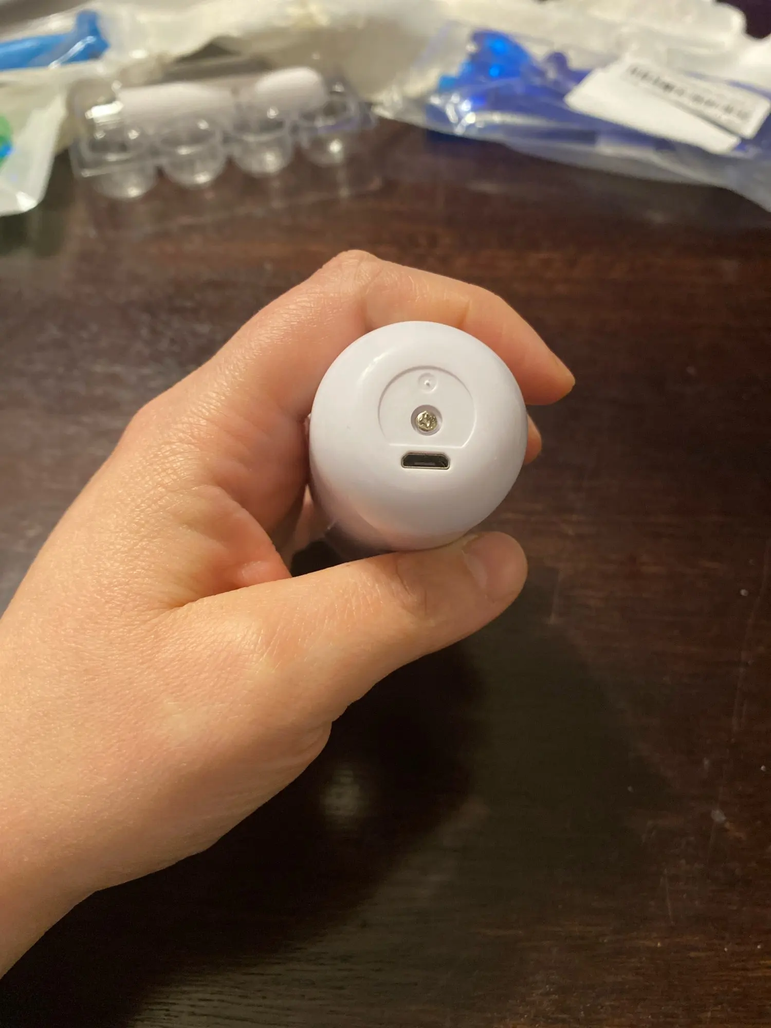 Viene en su cajita correspondiente con toda la protección posible, además trae un cable para cargarlo pero no la cajita que conecta a la electricidad, es del tamaño correspondiente de un fácil uso, hay que cargarlo antes de usar ya que viene sin carga, además hay que hacharle un poquito de agüita así funciona muy bien.