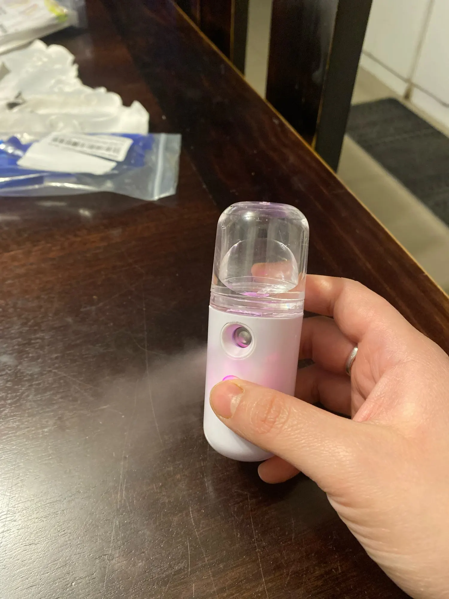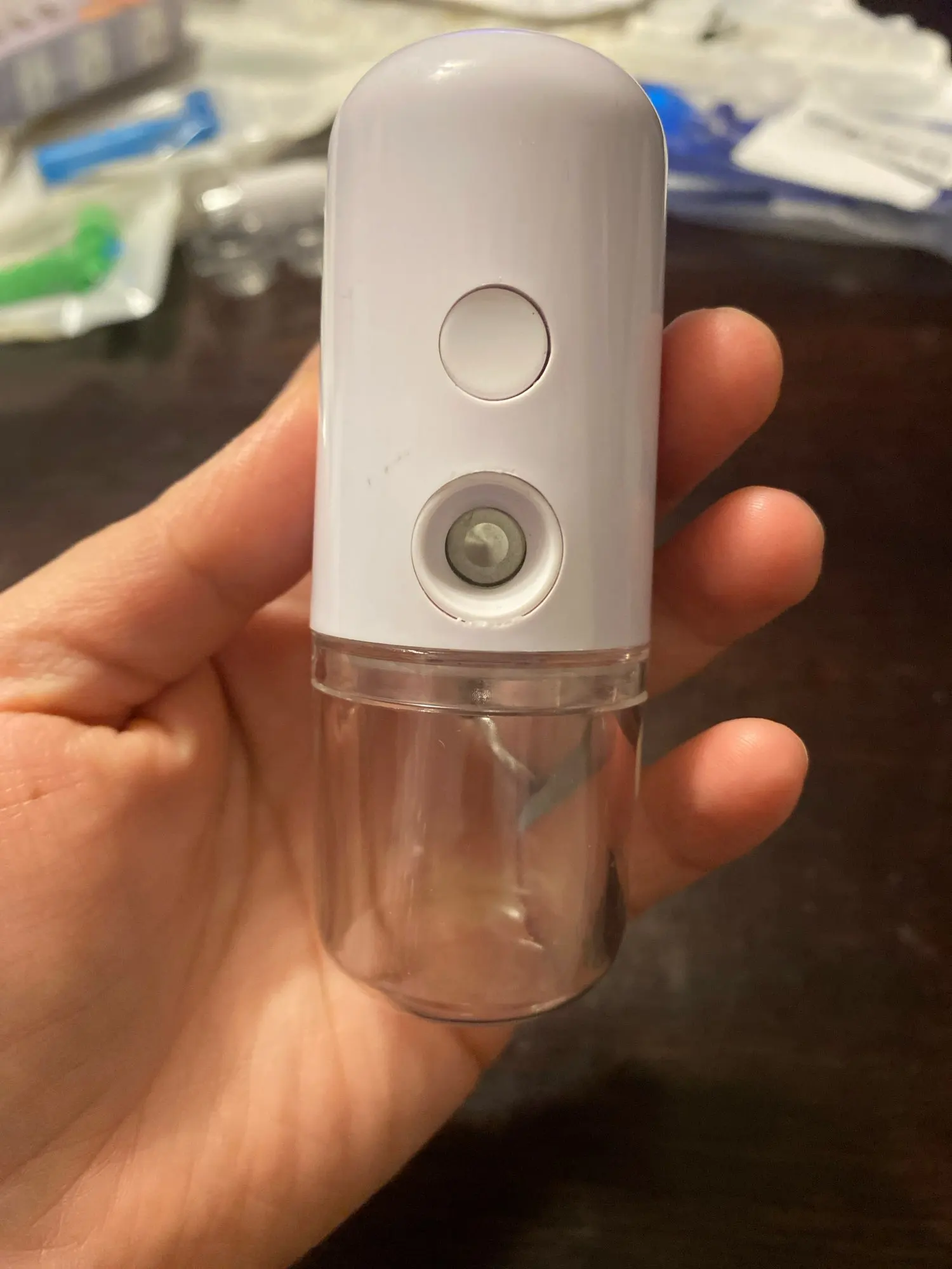 Tienes que sostenerlo cerca de tu cara durante mucho tiempo para usarlo, es un poco refrescante. Si se utiliza como un mini humidificador de aire, debería funcionar durante medio día.
