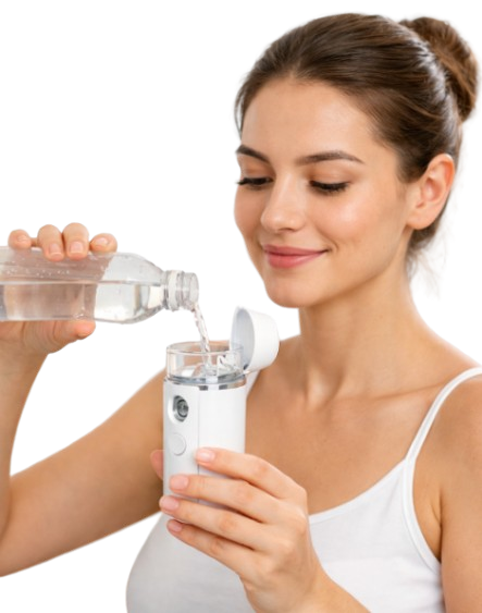 Se recomienda utilizar agua mineral o destilada. También puedes añadir tónicos o esencias faciales compatibles con vaporizadores, siempre que no sean aceites ni productos densos.
